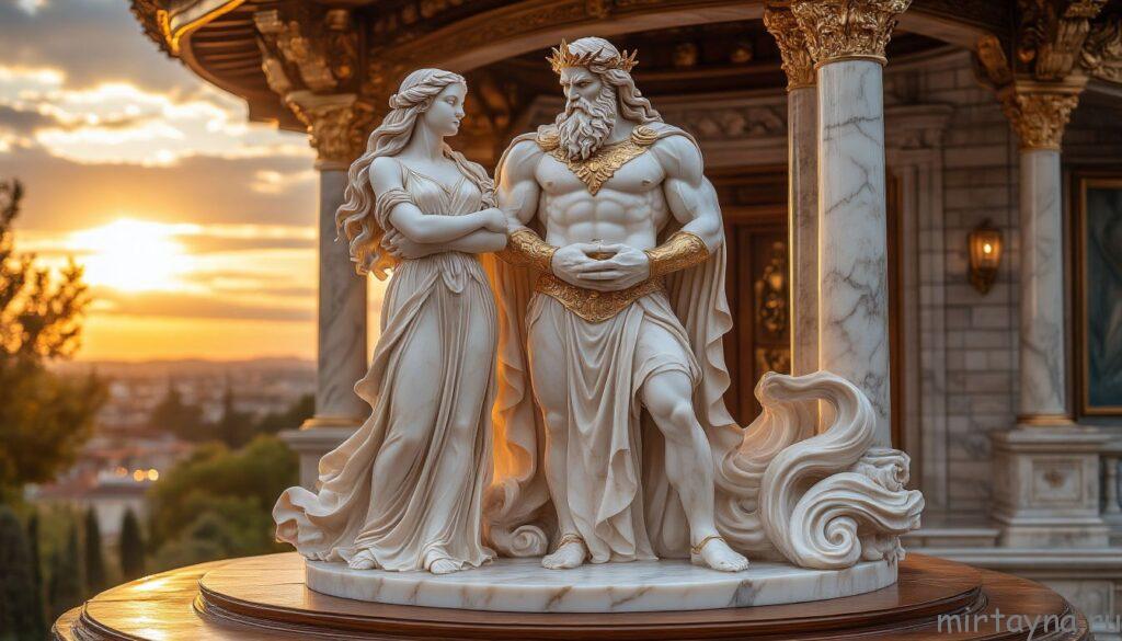 Брак между Геро́й и Зевсом в мифах редко выглядит как тихое согласие двоих. Это скорее публичный союз — договор о власти, о видимости порядка. Через него древние греки моделировали отношения между руководителем и институтом, который должен поддерживать этот порядок. Гера здесь — не только супруга, она — представительница правовой и ритуальной стороны брака. Часто миф показывает, что именно она следит за выполнением клятв и традиций, тогда как Зевс отвечает за власть и силу, но не всегда за моральную сторону сделки.