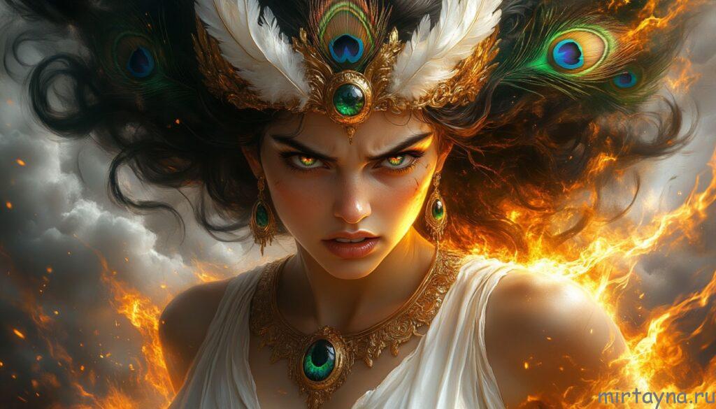 Павлиний образ у Геры — не декоративный бонус, а визуальная подпись божественной власти. В этом образе пересеклись несколько сюжетных нитей: древняя легенда о стороже Аргусе, художественная привычка выделять «глазки» на хвосте и практическая потребность обозначить божественную свиту рядом с царской фигурой. Художники разных эпох использовали птицу, чтобы подчеркнуть статус, торжественность и одновременно мистический аспект богини.