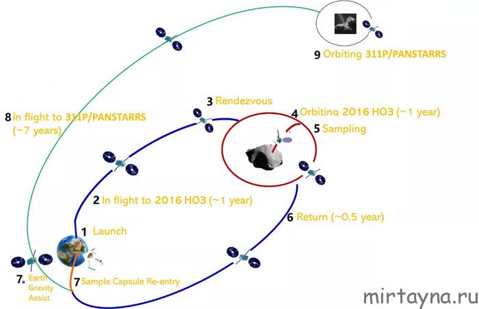 В апреле 2027 года «Тяньвэнь-2» начнёт двигаться к Земле, достигнув планеты в ноябре того года. На расстоянии около 23 тыс. км от аппарата отделится капсула с образцами, которая через некоторое время войдёт в атмосферу. «Тяньвэнь-2» же совершит гравитационный манёвр у Земли и полетит к объекту 311P/PanSTARRS. Его аппарат достигнет в январе 2035 года, после начнёт снижение высоты орбиты для детального изучения небесного тела. Это конечная точка путешествия «Тяньвэнь-2». Когда у аппарата подойдут к концу запасы рабочего тела («топлива») для его электрореактивных двигателей, специалисты попробуют совершить мягкую посадку на 311P/PanSTARRS, но уже, конечно же, без забора образцов грунта, либо просто оставят «Тяньвэнь-2» на орбите небесного тела.